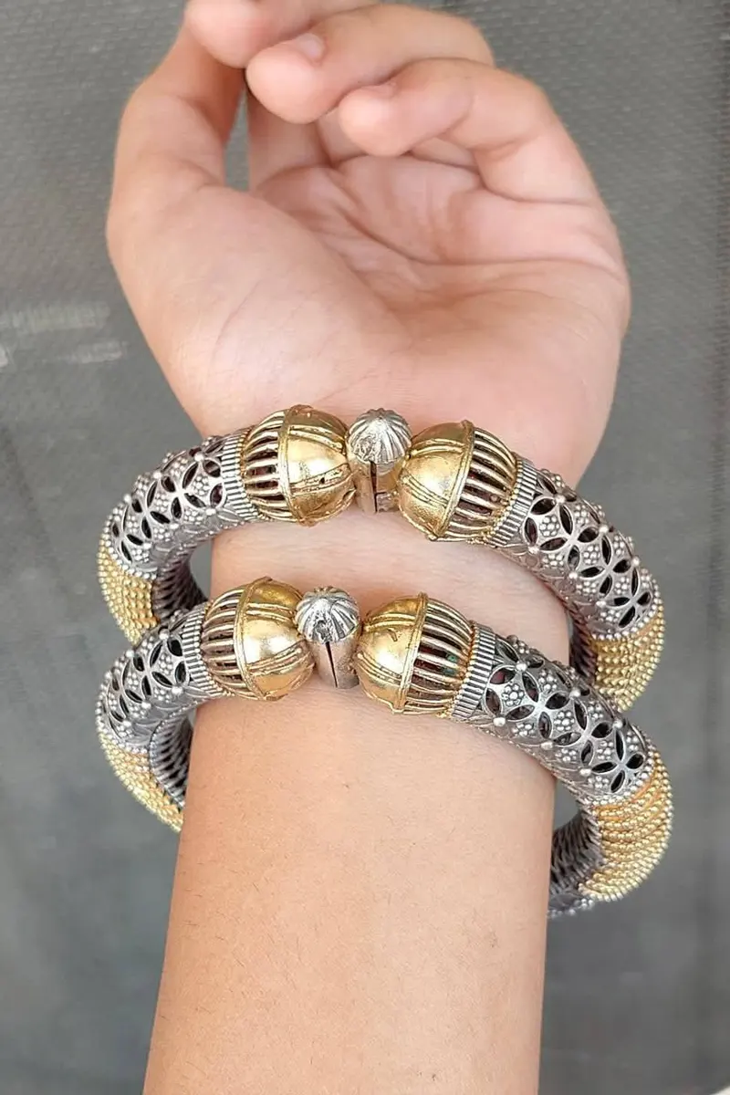 Beautiful high quality dual tone screw openable bangle set