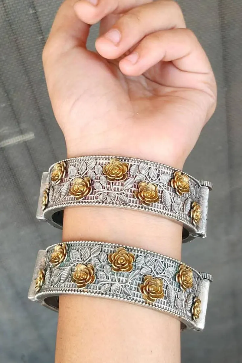 Dual tone flower design bangle with screw