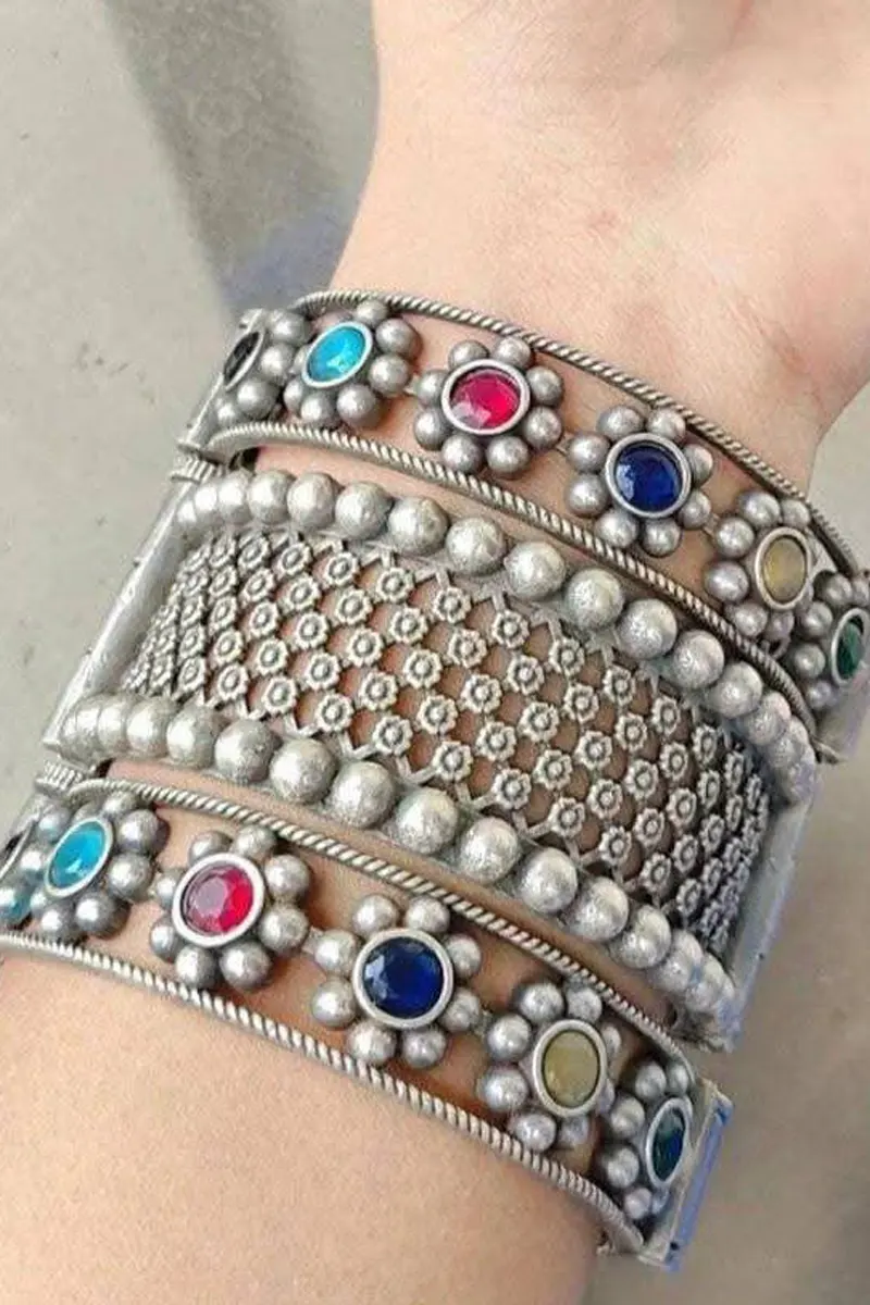 Be the first to review “Multicolour German silver bangle set” Cancel reply