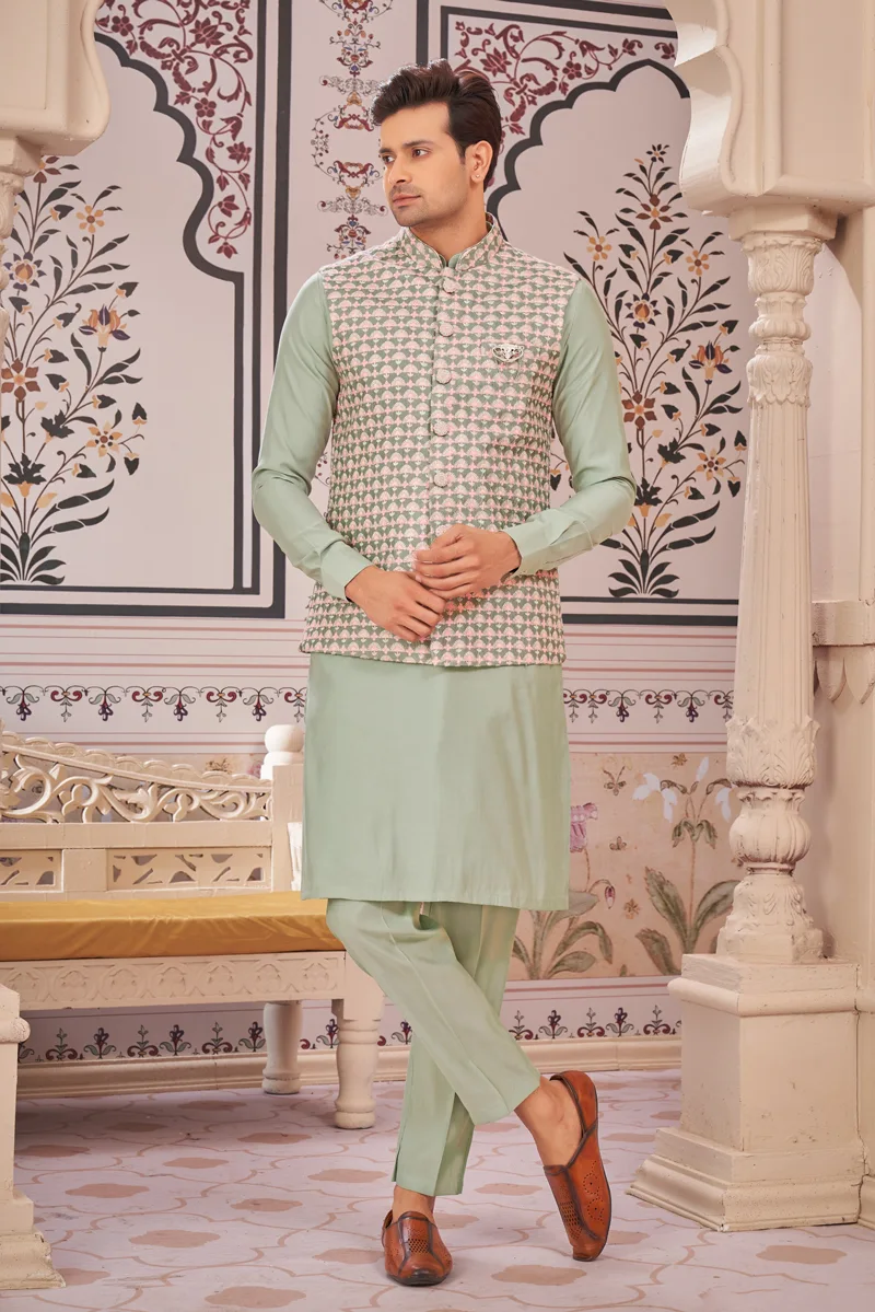 Pista green and multicolour panjabi/kurta with coti/jacket set
