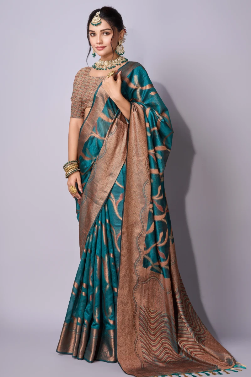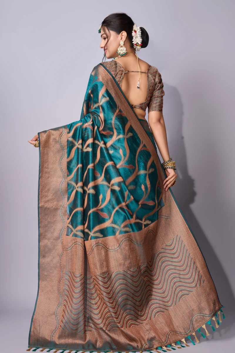 Sea green traditional weaving organza saree